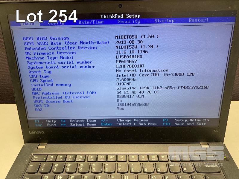 LAPTOP, LENOVO THINKPAD T470 (20HES0ET04), CORE i5 7300U (7TH GEN) @ 2.6GHz, 8GB DDR4 RAM, 256GB NVMe M.2 SSD, 14" WIDESCREEN (1366x768), INTEL HD VIDEO, Wi-Fi, BLUETOOTH, WINDOWS 10 PRO INSTALLED & POWER SUPPLY (NOTE: SCREEN BLEMISHES) S/N:PF0U4H57