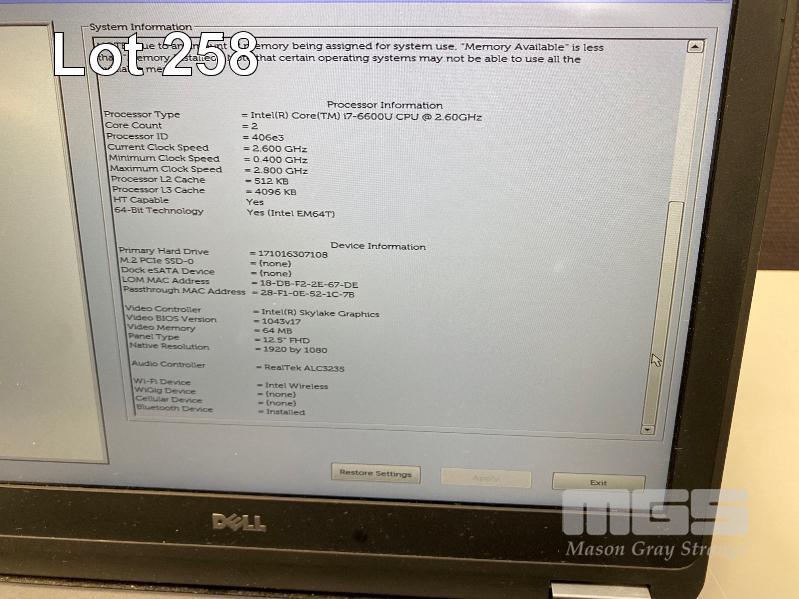 LAPTOP, DELL LATITUDE E7270, CORE i7 6600U (6TH GEN) @ 2.6GHz, 16GB DDR4 RAM, 512GB M.2 SSD, 12.5" WIDESCREEN (1920x1080), INTEL SKYLAKE GRAPHICS, Wi-Fi, BLUETOOTH, WINDOWS 10 HOME INSTALLED, POWER SUPPLY & CARRY BAG S/N:83F2CG2