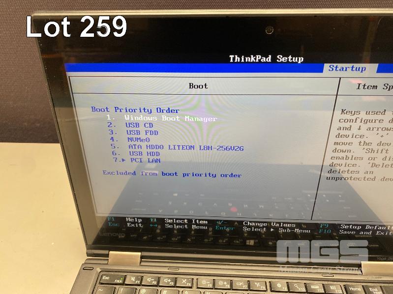 LAPTOP, LENOVO THINKPAD YOGA 260 (20FES1W202), CORE i5 6300U (6TH GEN) @ 2.4GHz, 16GB DDR4 RAM, 256GB M.2 SSD, 12.5" TOUCHSCREEN (1920x1080), INTEL HD VIDEO, Wi-Fi, BLUETOOTH, WINDOWS 10 PRO INSTALLED & POWER SUPPLY (NOTE: MARKS ON SCREEN) S/N:MP14RRDH