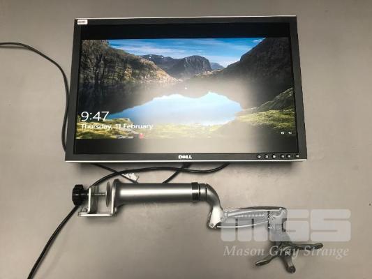 MONITOR, DELL 2408WFPb 24" LCD WIDESCREEN, HDMI, VGA, DVI, 4 PORT USB, CARD READER (WITH VGA CABLE, NO STAND) WITH HAFELE ELLIPTA DESK MOUNT MONITOR ARM S/N:CN0DP029742618362L3S
