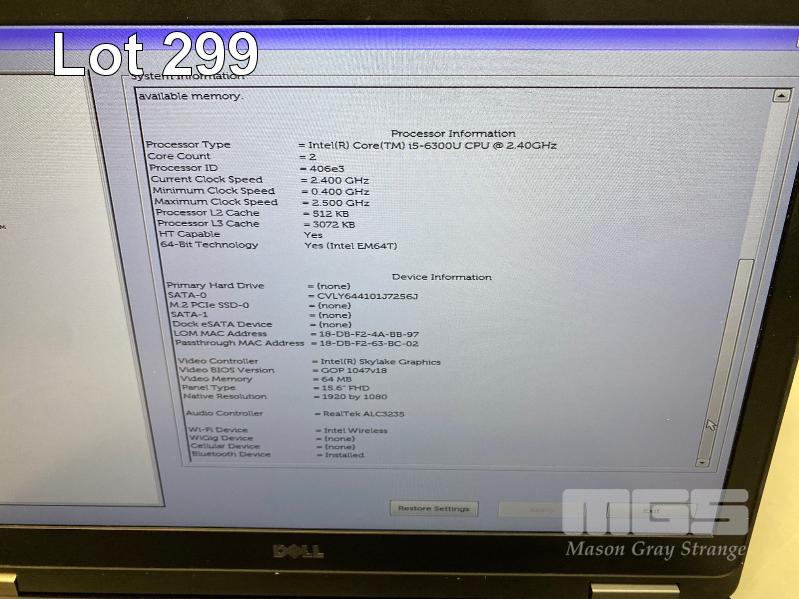 LAPTOP, DELL LATITUDE E5570, CORE i5 6300U (6TH GEN) @ 2.4GHz, 8GB DDR3 RAM, 256GB SSD, 15.6" WIDESCREEN (1920x1080), INTEL SKYLAKE GRAPHICS, Wi-Fi, BLUETOOTH, WINDOWS 10 HOME INSTALLED, DOCKING STATION & POWER SUPPLY S/N:7F8MMF2