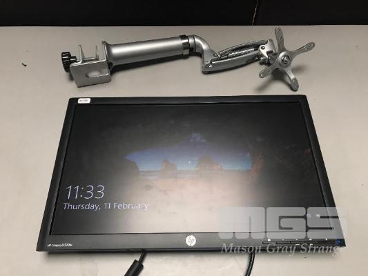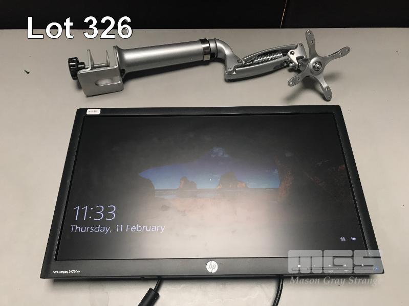 MONITOR, HP COMPAQ LA2206x 21.5" LED-BL LCD WIDESCREEN, VGA, DVI, 2-PORT USB (WITH VGA CABLE, NO STAND) WITH HAFELE ELLIPTA DESK MOUNT MONITOR ARM S/N:3CQ206D40Y
