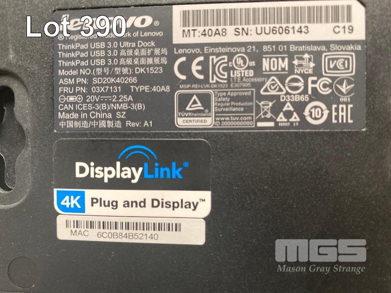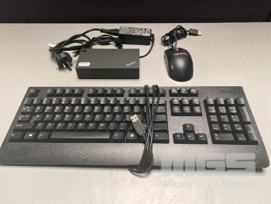 LENOVO THINKPAD USB 3.0 ULTRA DOCK LAPTOP DOCKING STATION, TYPE 40A8 WITH 45W ADAPTER, USB CABLE, KEYBOARD & MOUSE