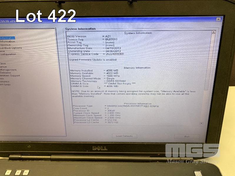LAPTOP, DELL LATITUDE E5530, CORE i5 3320M (3RD GEN) @ 2.6GHz, 4GB DDR3 RAM, 320GB SATA HDD, 15.6" WIDESCREEN (1366x768), INTEL HD VIDEO, Wi-Fi, BLUETOOTH, WINDOWS 7 PRO INSTALLED W/ LICENSE & POWER SUPPLY S/N:BL693X1