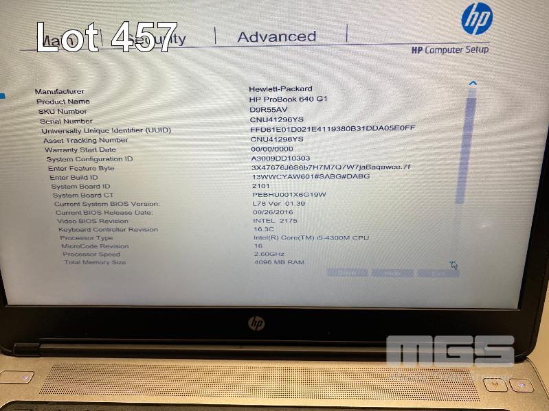 LAPTOP, HP PROBOOK 640 G1 (D9R55AV), CORE i5 4300M (4TH GEN) @ 2.6GHz, 4GB DDR3 RAM, 128GB SSD, DVD-RW, 14" WIDESCREEN (1366x768), INTEL HD VIDEO, Wi-Fi, BLUETOOTH, HP LT4112 4G MODULE, WINDOWS 10 PRO INSTALLED & POWER SUPPLY (NOTE: WHITE SPOT SCREEN BLEMISHES) S/N:CNU41296YS