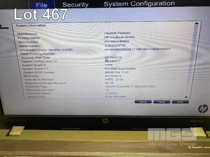 LAPTOP, HP PROBOOK 4540s (A1C68AV), CORE i7 3612QM (3RD GEN) @ 2.1GHz, 8GB DDR3 RAM, 750GB SATA HDD, DVD-RW, 15.6" WIDESCREEN (1366x768), INTEL HD VIDEO, Wi-Fi, BLUETOOTH, WINDOWS 10 PRO INSTALLED & POWER SUPPLY S/N:2CE2320P76