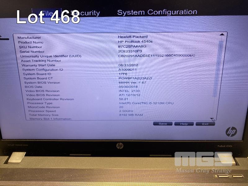LAPTOP, HP PROBOOK 4540s (B7C25PA), CORE i5 3210M (3RD GEN) @ 2.5GHz, 8GB DDR3 RAM, 120GB SSD, DVD-RW, 15.6" WIDESCREEN (1366x768), INTEL HD VIDEO, Wi-Fi, BLUETOOTH, WINDOWS 10 PRO INSTALLED & POWER SUPPLY (NOTE: WHITE SPOT SCREEN BLEMISHES) S/N:2CE23310P3