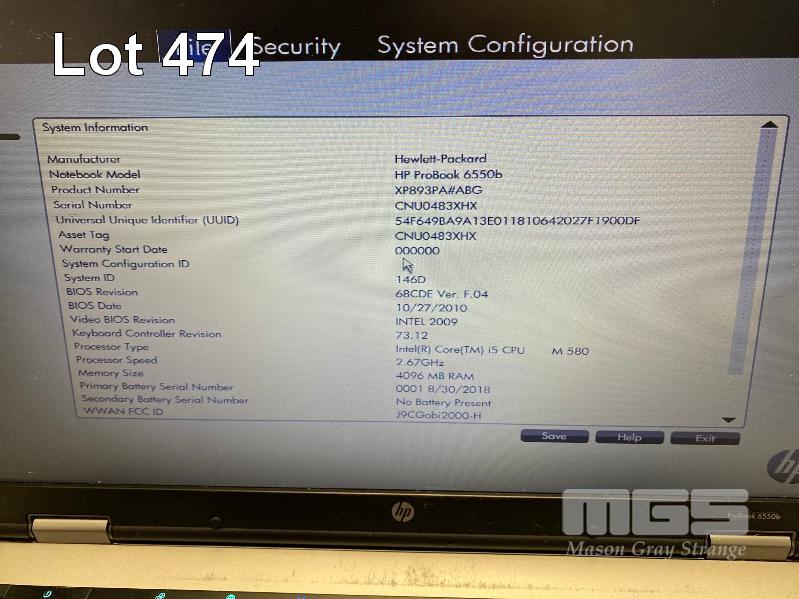 LAPTOP, HP PROBOOK 6550b (XP893PA), CORE i5 M580 @ 2.67GHz, 4GB DDR3 RAM, 120GB SSD, DVD-RW, 15.6" WIDESCREEN (1366x768), INTEL HD VIDEO, Wi-Fi, BLUETOOTH, WINDOWS 10 PRO INSTALLED & POWER SUPPLY S/N:CNU0483XHX