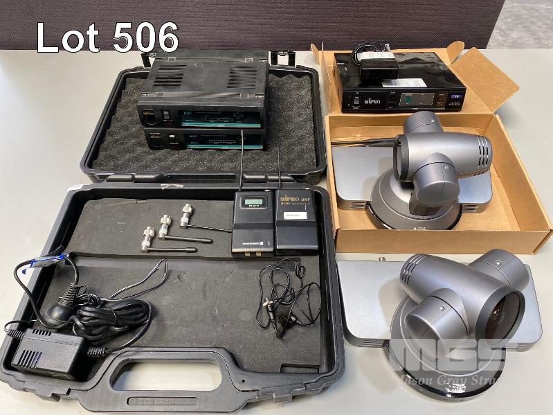 ASST MIPRO UHF WIRELESS RECEIVERS, BODY PACK TRAMSITTERS & 2 x SONY EVI-HD1 HD VIDEO CAMERAS (NOTE: INCOMPLETE, NO POWER SUPPLPIES)