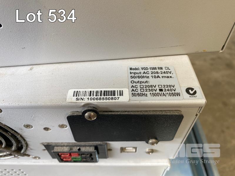 1 x PCM POWERCOM VGD-2000 RM UPS, 2000VA, 1400W 2 x PCM POWERCOM VGD-1500 RM UPS, 1500VA, 1050W 3 x PCM POWERCOM BATTERY PACKS, 36V(DC)