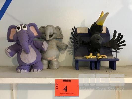 ELLIE THE ELEPHANT FROM THE HUGGIES COMMERCIAL AND A CLAY HORNBILL FROM AN "ASIA ONE" PRODUCTION FOR SINGAPORE. NB: THESE ARE NOT TOYS
