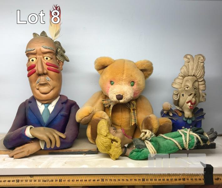 ASSORTED CLAY ANIMATION MODELS FROM A MITSUBISHI TELEVISION COMMERCIAL. THE ANIMATABLE TEDDY BEAR IS FROM A COMMERCIAL FOR "MAX ONLINE" OUT OF SINGAPORE. THE RENNAISSANCE MAN IS A CLAY SCULPT FROM THE ANIFEX DEMONSTRATION REEL. NB: NOT A TOY. (NB: BONUS! THE WINNING BIDDER WILL RECEIVE A LINK TO THE "MAX ONLINE" TV COMMERCIAL.)