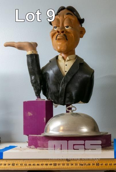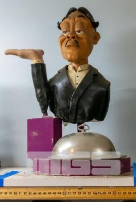 HAUGHTY BUTLER MODEL IN CLAY. USED IN A VISA TV COMMERCIAL OUT OF SINGAPORE. CIRCA 1994. ALSO INCLUDES A METAL TERRINE. NB: NOT A TOY