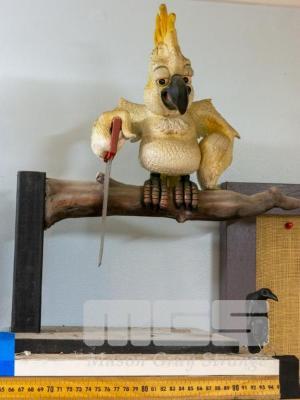 PAINTED CLAY COCKATOO. PITCH MODEL FOR A SHORT FILM. THE SMALL BLACK BIRD WAS FROM THE MULTI AWARD WINNING SHORT FILM "SLEIGHT OF HAND." (2012)