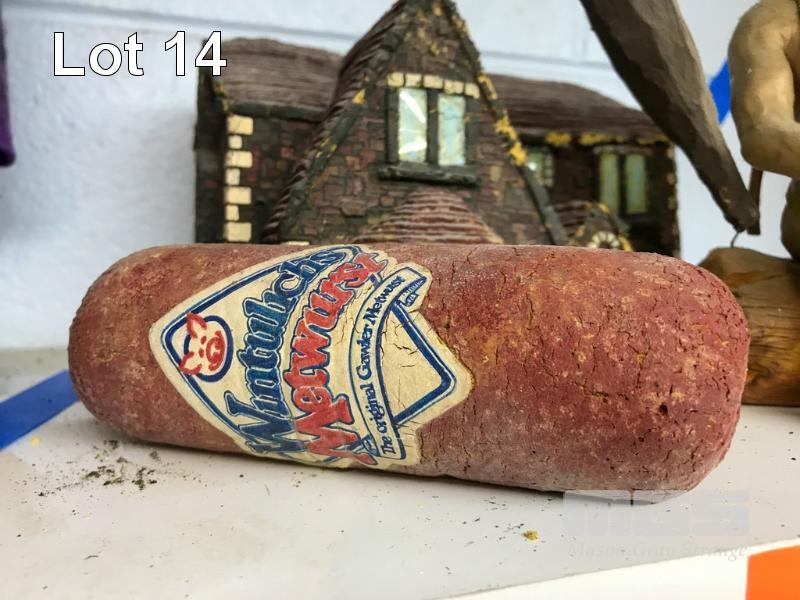 MIXED BAG. A CAVEMAN FROM A DOCUMENTARY ANIFEX SHOT IN THE EARLY NINETIES. A PUPPET METWURST IN FOAM LATEX AND A SMALL FOAM LATEX HOUSE. NB: NOT TOYS