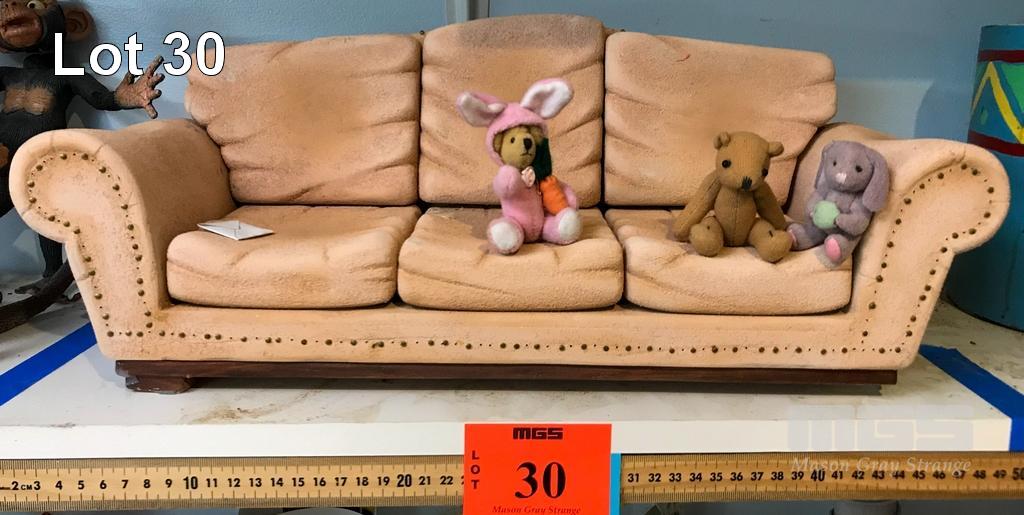 MINIATURE SOFA AND SMALL SOFT TOYS. NB: THESE MODEL TOYS ARE NOT REAL TOYS