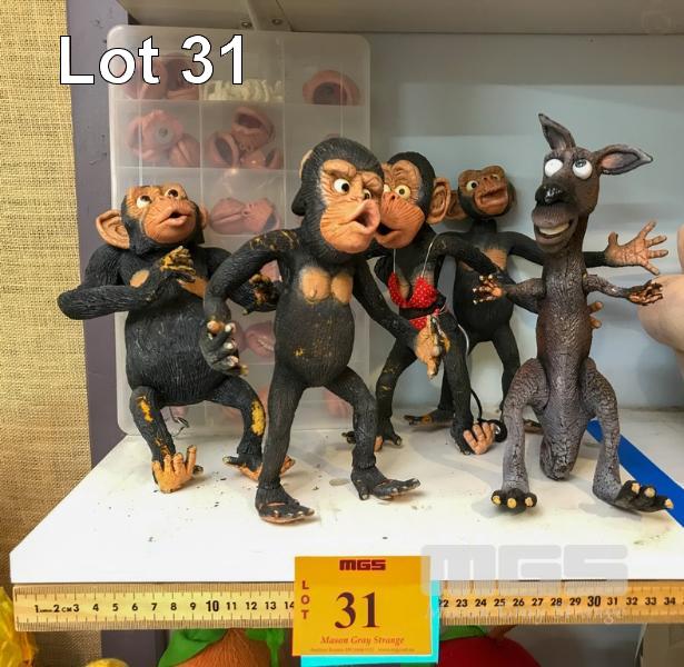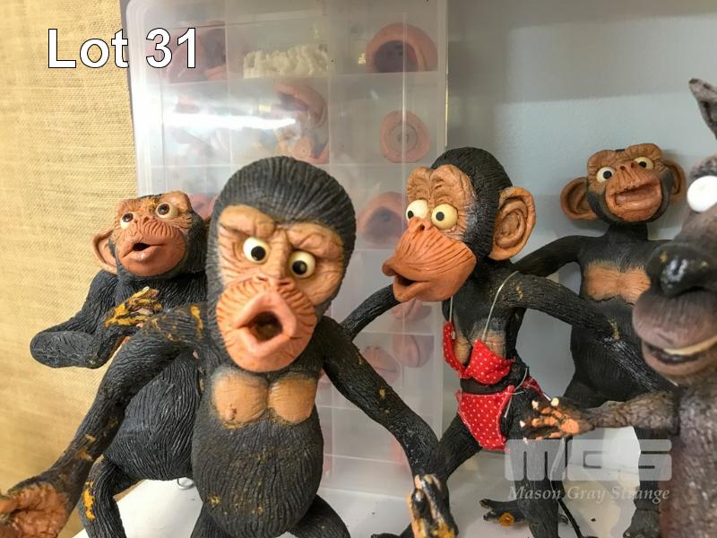 SET OF FOAM LATEX CHIMPANZEE ANIMATION MODELS FROM A PROPOSED SHORT FILM THAT DID NOT GO AHEAD. COMES WITH SOME REPLACEMENT MOUTHS. NB: NOT A TOY