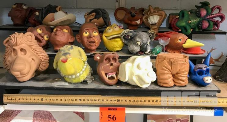 COLLECTION OF ASSORTED CLAY HEADS. SOME ARE ORIGINAL CLAY SCULPTS FOR TVC'S. OTHERS ARE FROM PITCH MODELS. LOT INCLUDES A RATHER NICE, PAINTED CLAY, FEMALE SLEEPING DRAGON'S HEAD FROM A TOSHIBA COMMERCIAL MADE FOR SINGAPORE IN 1999. INCLUDES ORIGINAL CLAY SCULPT OF PADDLE POP LION'S HEAD. (NB: BONUS! THE WINNING BIDDER WILL RECEIVE A LINK TO THE TOSHIBA DRAGON TV COMMERCIAL.) NB: NOT A TOY