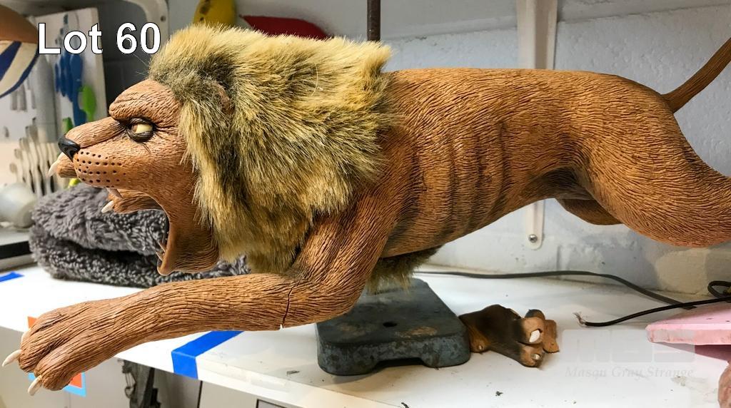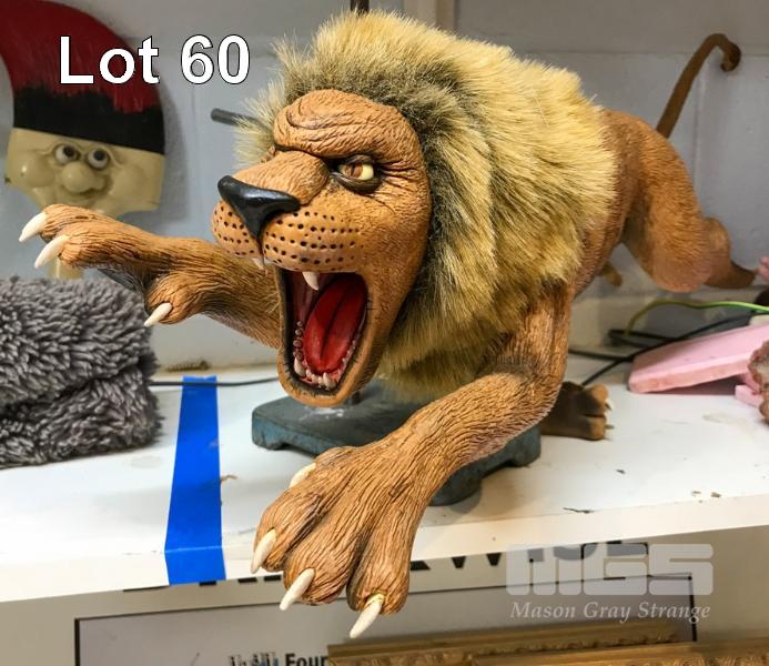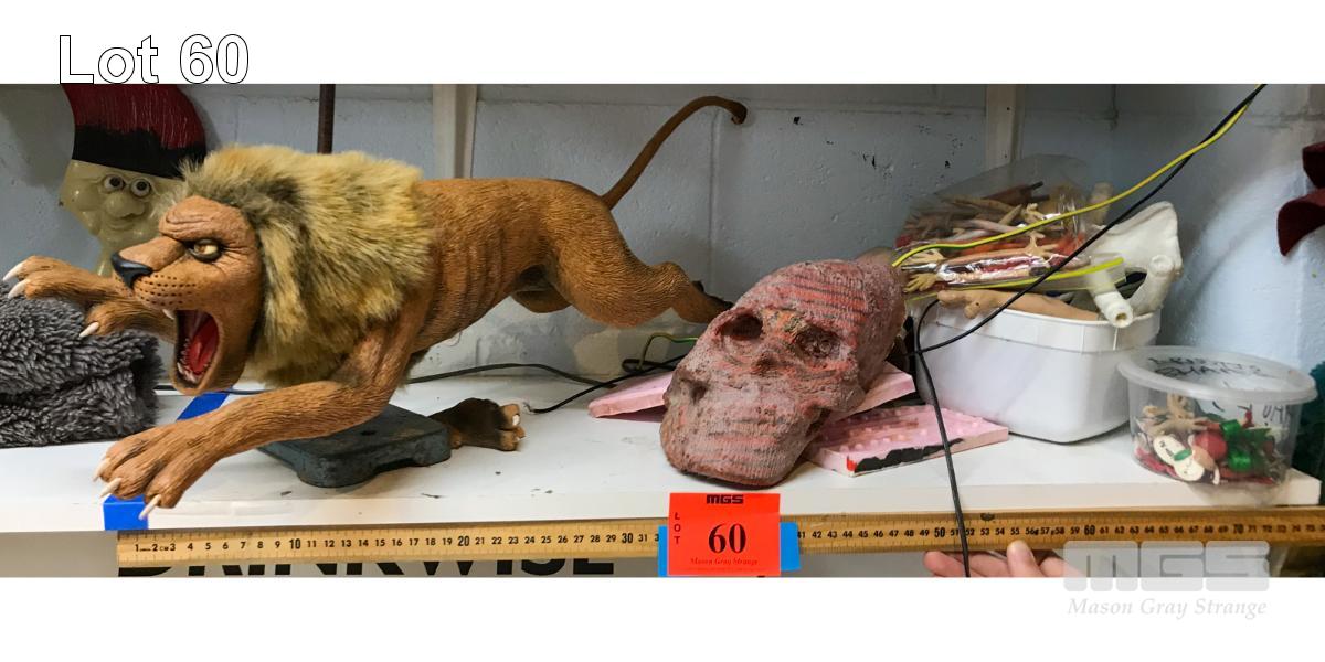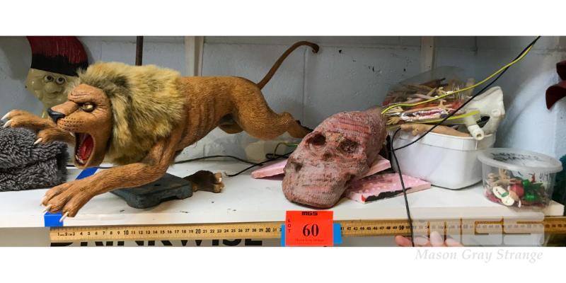 PAINTED CLAY LION MODEL FROM A PROPOSED SHORT FILM. LOT ALSO INCLUDES AN ASSORTMENT OF SILICONE BODY PARTS, A CARTOON LEG MOLD AND BASIC LATEX SKULL MASKS. NB: THESE ARE NOT TOYS