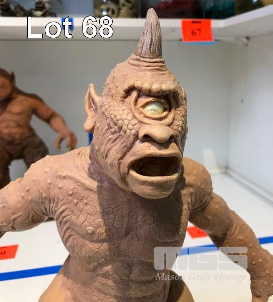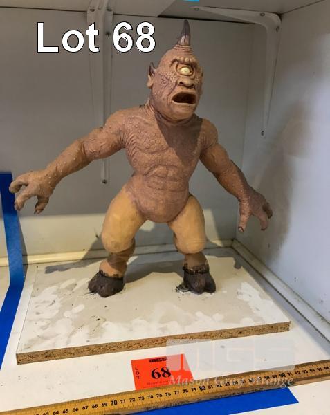 UNPAINTED LATEX CYCLOPS FAN ART. BUILT OVER A SIMPLE WIRE ARMATURE, THE MODEL IS POSEABLE. IN AN INTERESTING SIDENOTE: RAY HARRYHAUSEN SAW THIS MODEL WHEN HE VISITED THE ANIFEX STUDIO IN THE LATE NINETIES. NB: THIS IS NOT A TOY