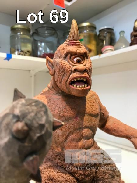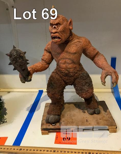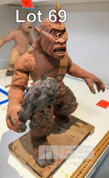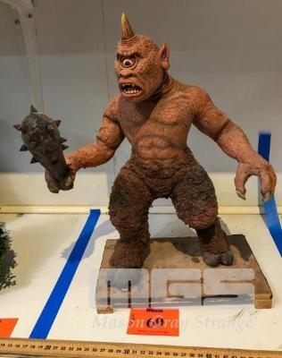 EXCELLENT PAINTED LATEX CYCLOPS FAN ART IN THE STYLE OF MASTER STOP MOTION ANIMATOR, RAY HARRYHAUSEN. BUILT OVER A SIMPLE WIRE ARMATURE, THIS MODEL IS POSEABLE. THE LEGS ARE COVERED IN FAUX FUR AND THE CREATURE HOLDS A PROP CLUB. IN AN INTERESTING SIDENOTE: RAY HARRYHAUSEN SAW THIS MODEL WHEN HE VISITED THE ANIFEX STUDIO IN THE LATE NINETIES. NB: THIS IS NOT A TOY