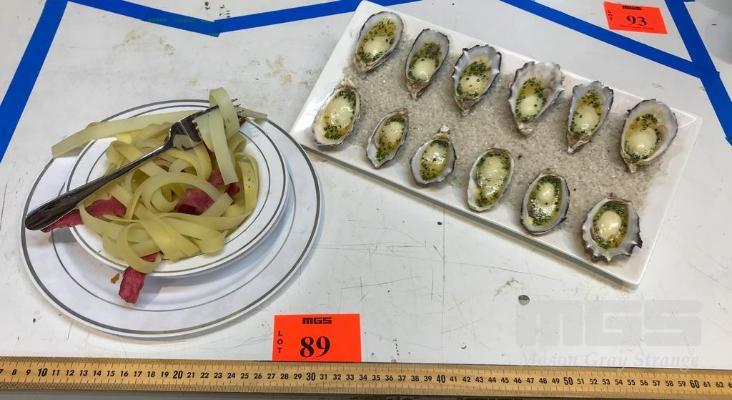 FAKE FOOD FROM A MKR PROMOTION. PLATE OF OYSTERS AND SPAGHETTI