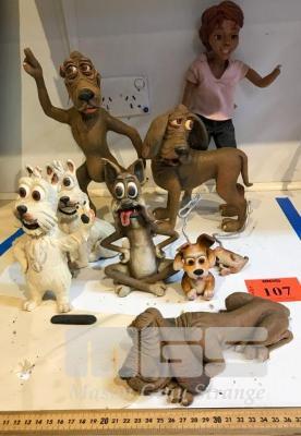 SCHMACKO'S CHARACTERS. SOME ARE FOAM LATEX WHILE OTHERS ARE PAINTED CLAY. THE CLAY MODELS WERE USED TO HELP DESIGN THE CHARACTERS. INTERESTINGLY, THE FEMALE CHARACTER IS FROM THE AMERICAN VERSION OF THE "BATHTIME" TV COMMERCIAL. THE AMERICANS WANTED A "BETTER LOOKING" SLIMMER DOROTHY, SO THIS CHARACTER IS LOOSLY BASED ON ANNETTE BENNING