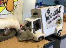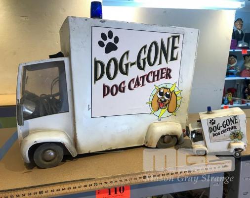 FROM THE SHORT SCHMACKO'S FILM " A DOG OF A DAY." A DOG CATCHERS VAN IN TWO SCALES. ONE FOR CLOSE UP AND ONE FOR DISTANCE. THEY ARE ONLY DRESSED TO ONE SIDE. (NB: BONUS! THE WINNING BIDDER WILL RECEIVE A LINK TO THE TV COMMERCIAL.) THESE ARE NOT TOYS