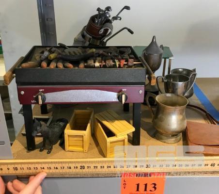 AN ASSORTMENT OF PROPS INCLUDING A MINIATURE BBQ AND GOLF CLUBS. LOT ALSO INCLUDES MINIATURE CUPS AND TROPHIES. THESE ARE NOT TOYS