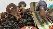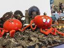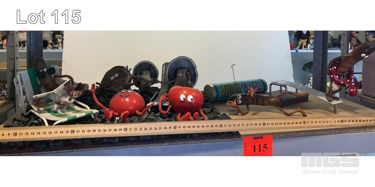 AN ASSORTMENT OF CHARACTERS AND PROPS FROM OUR ARNOTT'S SHAPES COMMERCIALS. LOT INCLUDES TOMATOES, CHOPS, MUSHROOMS AND SAUSAGES MADE PRIMARILY FROM RESIN AND FOAM LATEX. THE BASE IS FAUX BBQ BEADS AND HAS BEEN CONSTRUCTED SO THAT IT GLOWS WHEN LIT FROM BELOW
