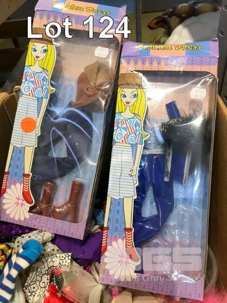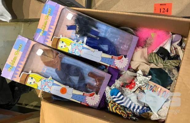 ASSORTED DOLLS CLOTHING AND SOME SMALL PROPS. PROPS ARE NOT TOYS