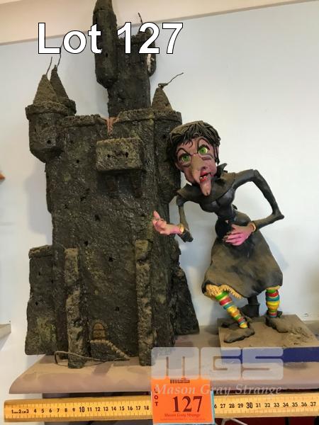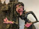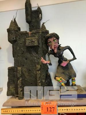 CLAY MAQUETTE MODEL OF A WITCH AND A CLAY CASTLE