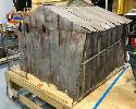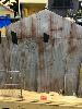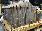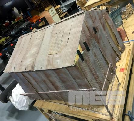HOME HARDWARE CORRUGATED IRON BACKGROUND SHED. NB: IRON IS MADE FROM PRESSED ALUMINIUM SHEETS. LOT ALSO INCLUDES LENGTHS OF SCALE CYCLONE FENCING. THIS IS NOT A TOY