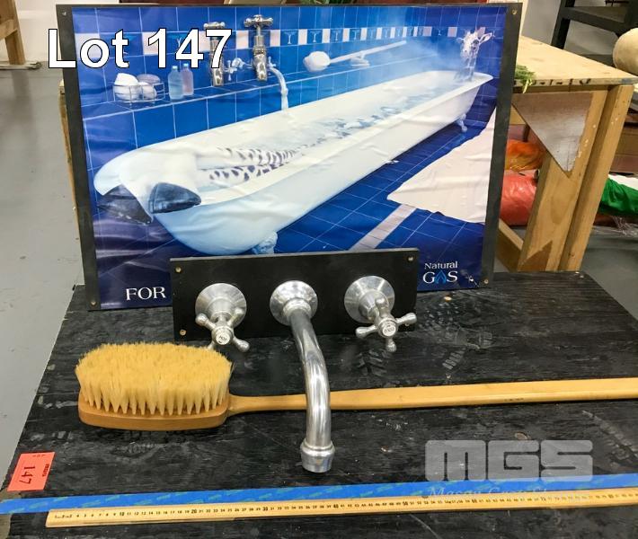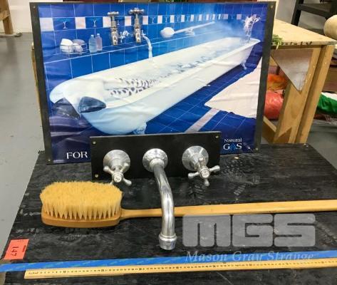 NATURAL GAS "GIRAFFE IN A BATH" OVERSIZED PROPS AND POSTER FROM THE TVC. NB: THE POSTER HAS THREE DIMENSIONAL METAL TAPS EMBEDDED IN IT.