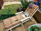 ASSORTED HOME HARDWARE PROPS. INCLUDING A GARDEN SHED, LOUNGER, TUBS OF LAWN EDGING, POT PLANT AND TRELLIS. THESE ARE NOT TOYS