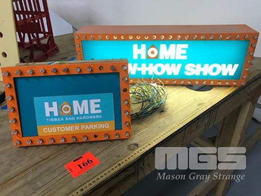 HOME HARDWARE SIGNS, ONE OF WHICH CAN BE LIT UP. NB: THIS IS NOT A TOY