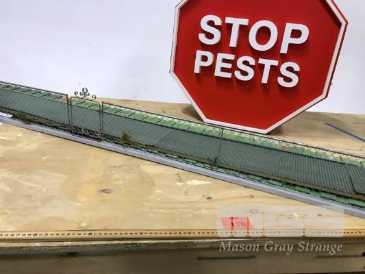 ASSORTED PROPS. "STOP PESTS" SIGN FROM LOUIE THE FLY, MINIATURE FENCES FROM SCHMACKO'S