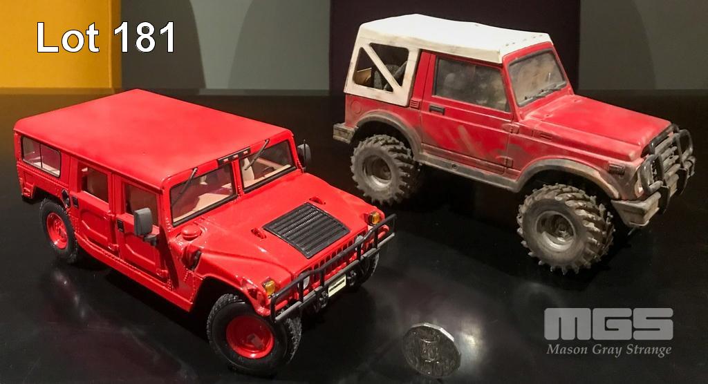 SET OF VEHICLES INCLUDING A HUMMER, A FOUR WHEEL DRIVE, AN EARTH MOVER AND A MOTOR BIKE