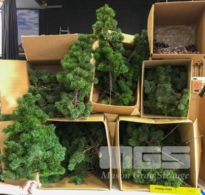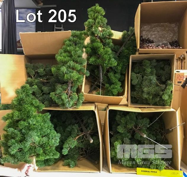 COLLECTION OF MINIATURE PINE TREES. COMES WITH BAG OF PINE CONES