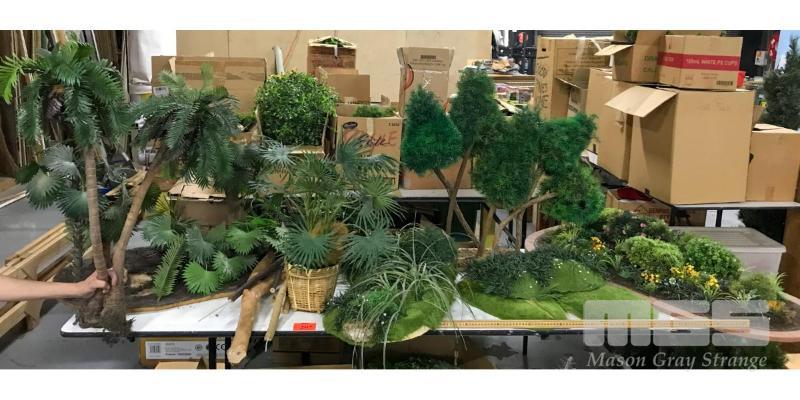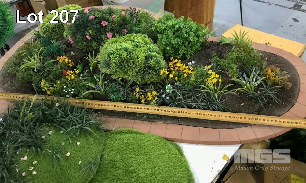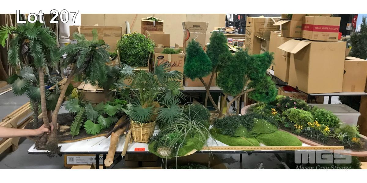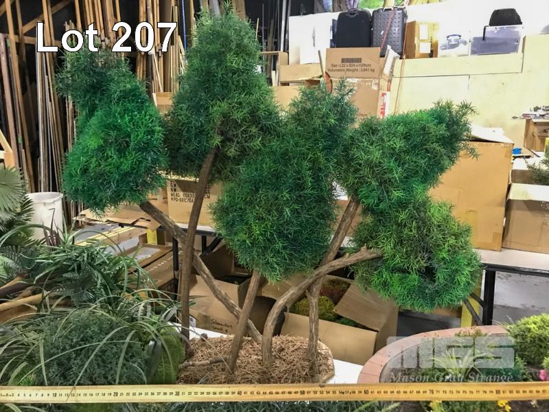ASSORTMENT OF EXOTIC TREES AND PLANTS. SOME SET GARDEN BED PIECES