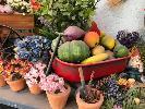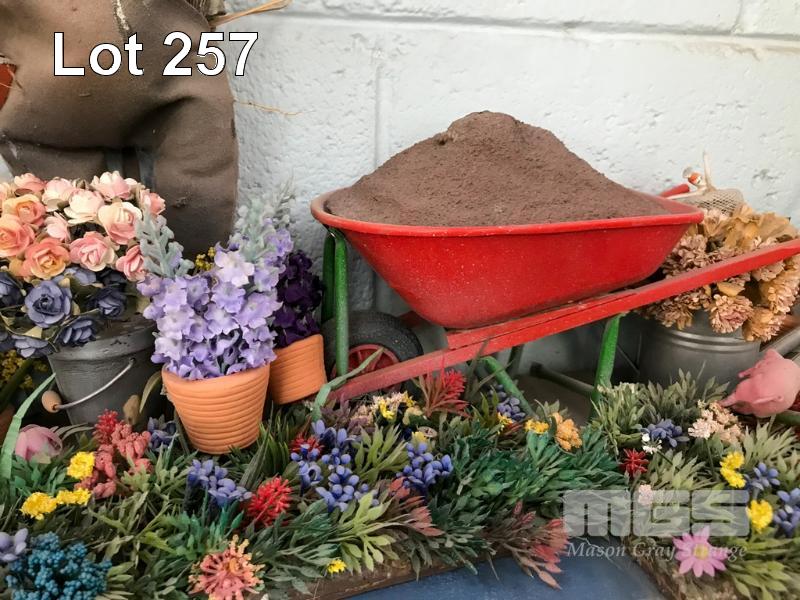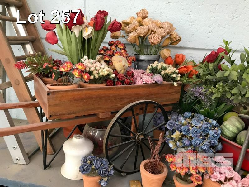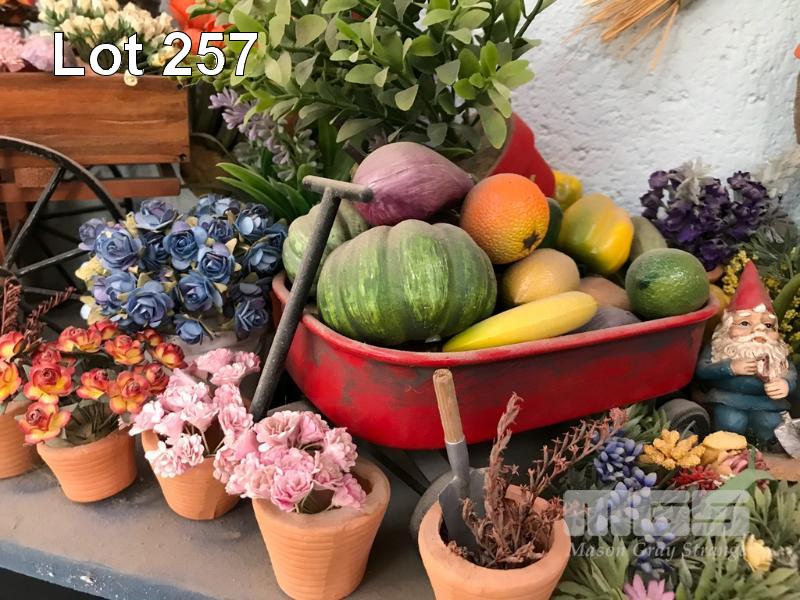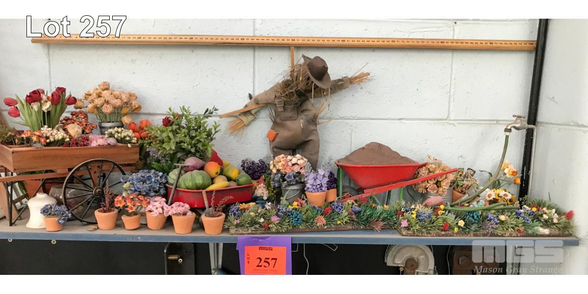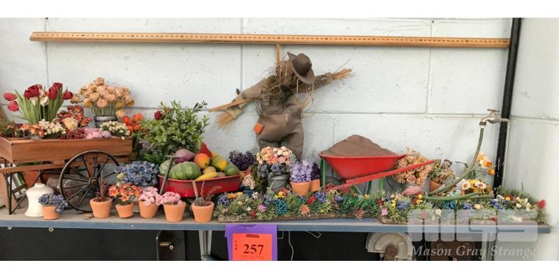 HOME HARDWARE GARDEN MODELS. INCLUDES SCARECROW AND MODEL FLOWERS AND FRUIT
