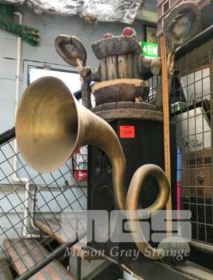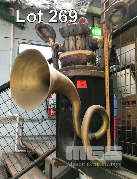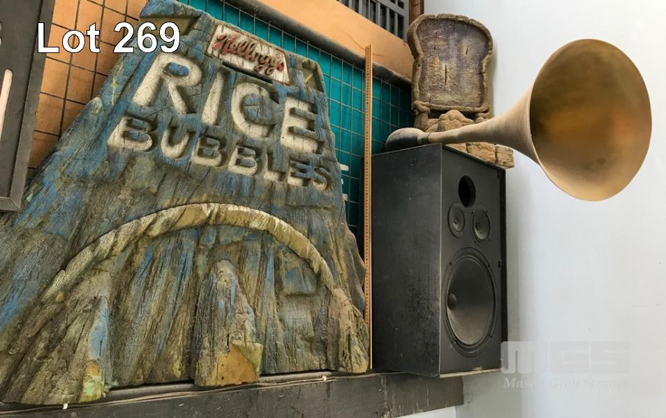 RICE BUBBLES CLAY AND RESIN PROPS. LOT INCLUDES CARVED POLY MOUNTAIN FACE, 2 CLAY "BREAKFAST GODS" IN CLAY OVER POLYSTYRENE AND 2 LARGE RESIN HORNS FROM A MR. REACH TV COMMERCIAL. (NB: BONUS! THE WINNING BIDDER WILL RECEIVE A LINK TO THE TV COMMERCIAL.) NB: NOT A TOY. NB: SPEAKERS ARE NOT INCLUDED. (THIS ITEM TO BE COLLECTED TUESDAY 2ND MARCH)