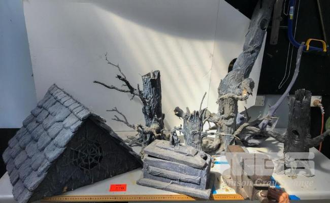COLLECTION OF PROPS FROM THE MULTI AWARD WINNING SHORT FILM "GARGOYLE," INCLUDING A NUMBER OF FANTASY STYLE TREE STUMPS