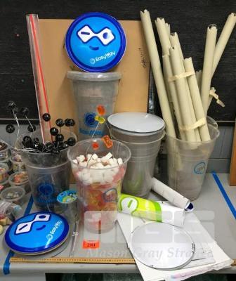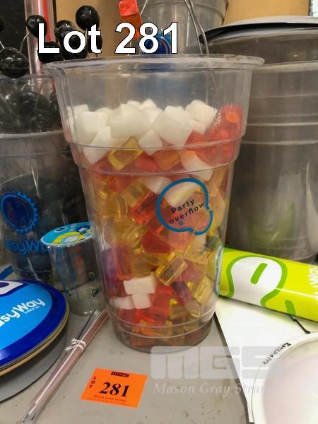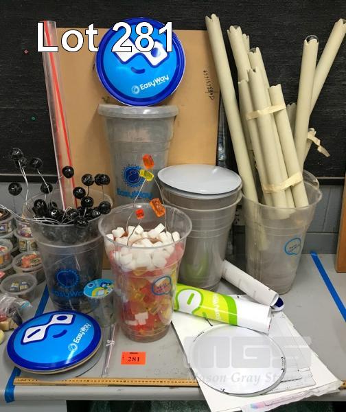 PROPS FROM AN EASYWAY TV COMMERCIAL. INCLUDES OVERSIZED PLASTIC CUPS AND CANDY( RESIN) REPLACEMENT ANIMATION MODELS