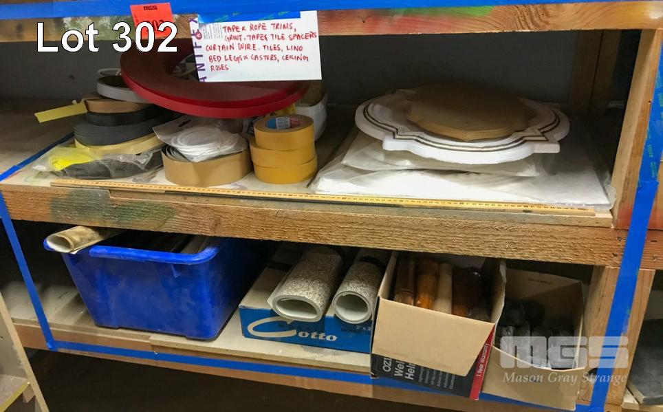 RANDOM SELECTION. INCLUDES TAPE AND ROPE, GROUT, TILE SPACERS, CURTAIN WIRE, BED LEGS AND CASTORS AND CEILING ROSES