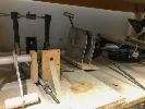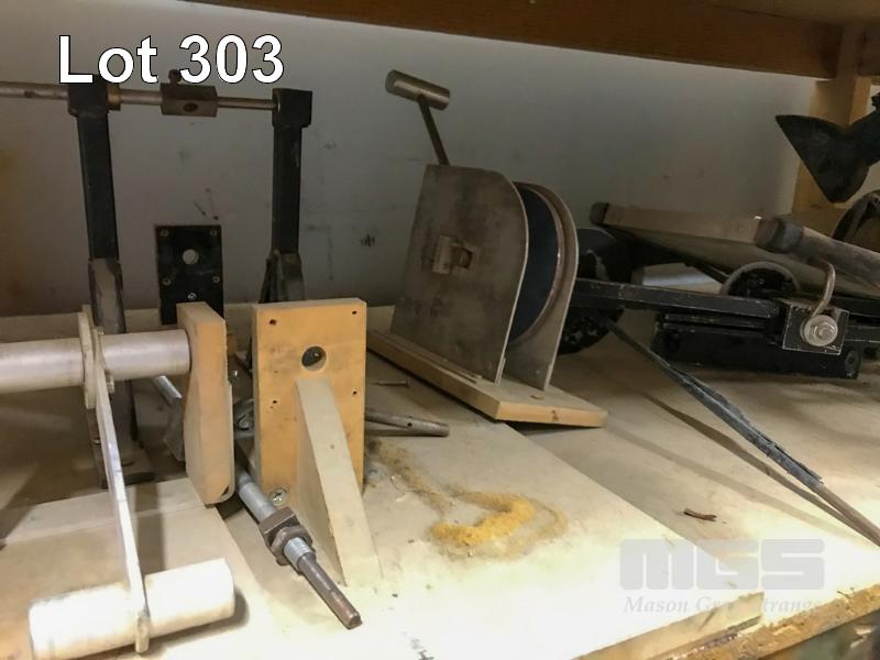 SELECTION OF BESPOKE METAL, PLASTIC AND WOODEN RIGS. BIKE CHAIN. AIR CONDITIONING DUCTING
