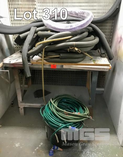 PAINTING BENCH WITH PAPER ROLLER DISPENSER. HOSEPIPE AND CONNECTORS. ALSO INCLUDES PIPE INSULATION