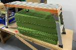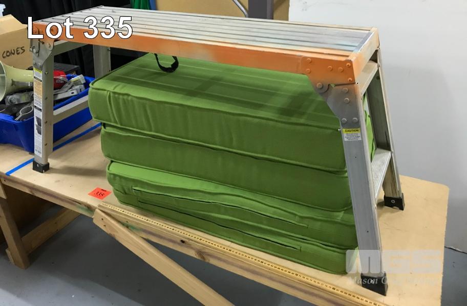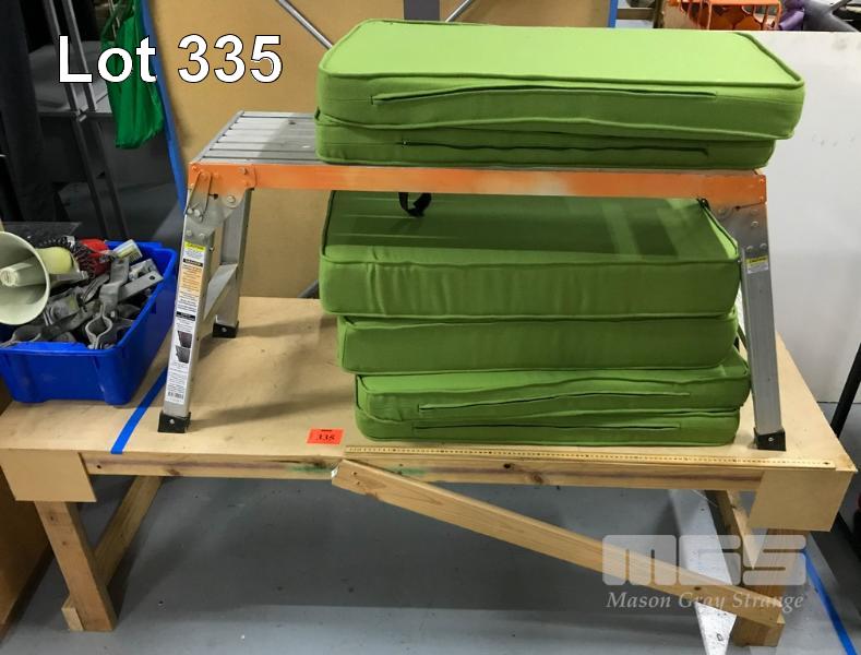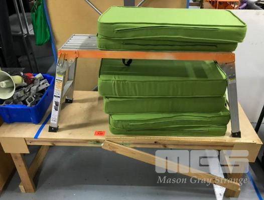 4 COUCH CUSHIONS, SMALL ROSTRUM TABLE AND "GORILLA" TRESSLE