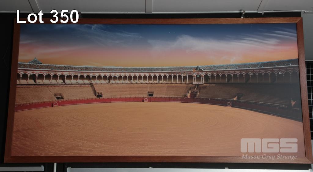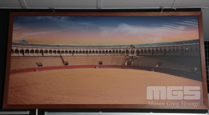 BULLRING BACKGROUND FOR THE "BEEF" FANTASTIC NOODLES TV COMMERCIAL (APPROX. 2.9M X 1.7M ) (NB: BONUS! THE WINNING BIDDER WILL RECEIVE A LINK TO THE TV COMMERCIAL.) (THIS ITEM TO BE COLLECTED MONDAY 1st MARCH)