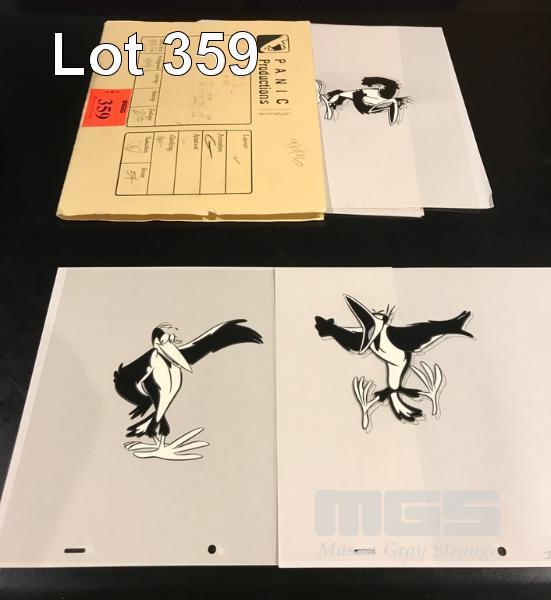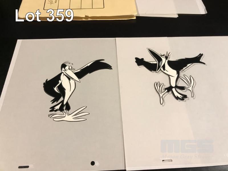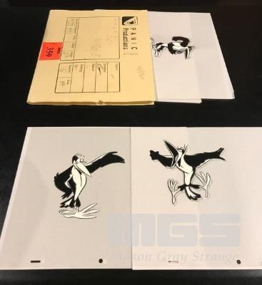 COLLECTION OF TRADITIONAL HAND PAINTED ANIMATION CELS. SIP N' SAVE MAGPIE. GREAT CHARACTER. MANY CELS INCLUDE ORIGINAL HAND DRAWN PAPER CEL